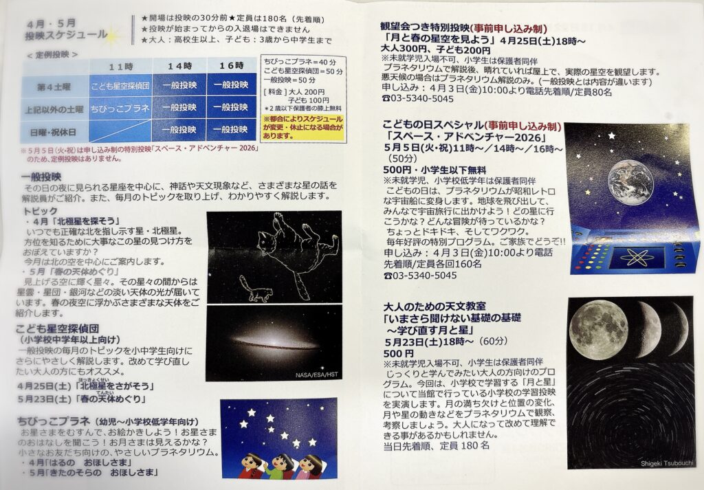 土曜日11:00〜子ども向けの投影もあるのでそちらも行ってみたいです。