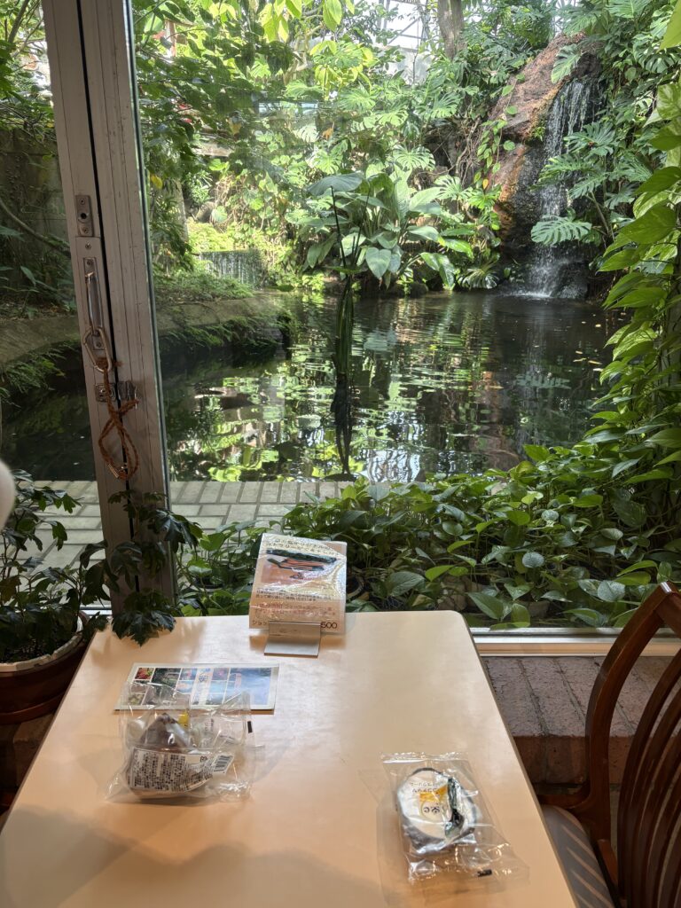 入ってすぐ、ショップがあるのでそちらでココナッツアイス500円、カカオアイス700円を買って夢の島カフェ(休業中で休憩スペースとして利用可能)で食べました。